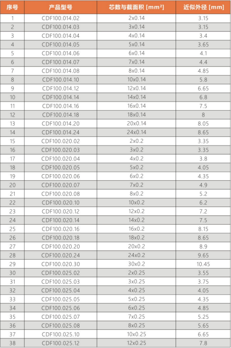 CDF100系列:適合于高速運(yùn)動,標(biāo)準(zhǔn)彎曲半徑拖鏈中使用。耐磨/耐彎曲/阻燃/環(huán)保/抗撕裂等性能優(yōu)異,耐油類附著。常用于:3C,醫(yī)療,新能源,航天,軍工裝備等行業(yè)拖鏈系統(tǒng)的信號傳輸。