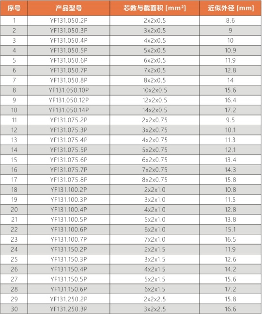 彎曲半徑 : 非拖鏈內(nèi)運(yùn)動(dòng):10.0X電纜外徑