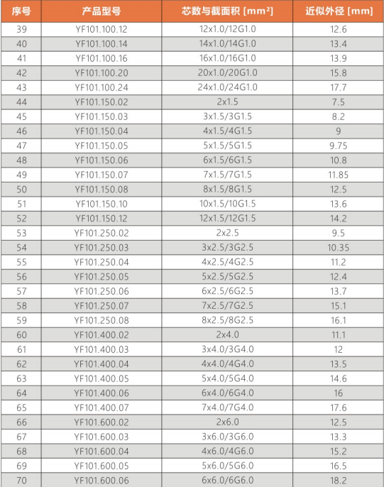 動(dòng)力線導(dǎo)體絞合節(jié)距小,柔韌性強(qiáng),耐彎折,耐磨損,抗撕裂,電纜阻燃和耐油,經(jīng)過4KV電壓的測(cè)試,具有較高的電氣性能,產(chǎn)品適用于工業(yè)機(jī)械,暖氣及空調(diào)安裝系統(tǒng),中等程度速率移動(dòng)設(shè)備,機(jī)械負(fù)載的干燥或潮濕的空間。